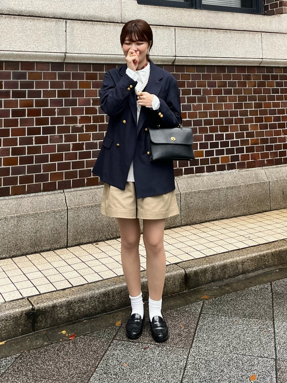 ブレザーとハーフパンツがかわいいの!! 秋らしい雰囲気あるけど、ハーフパンツだから ちょっと涼しい!🥱 足元はきれいめなローファーで👞