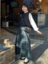 traditionalwetherwearのキルトに コラボお洋服のキルティングスカートで キルト×キルト!これがまーーじで可愛いの😍 ショート丈のベストだから横アングルが可愛い!華奢に見える!!👀 手元はコンパクトに小さめのショルダーバッグを👜