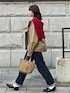 デニムにジャケットじゃ物足りなさにら赤カーディガンで差し色で遊びたくなりました✨ BRADYも雰囲気が出ておしゃれ感💃