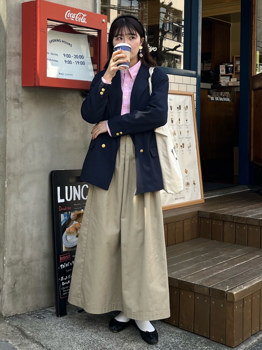 ジャケットにピンクシャツを。 スカートはシンプルに合わせやすいチノスカート! カチューシャしたりピンク入れたり女の子らしさも取り入れつつ、ジャケットで一気にトラット感を出すのが可愛い🥺🫶🏻💭 ぜひ、やってみて欲しい!!!