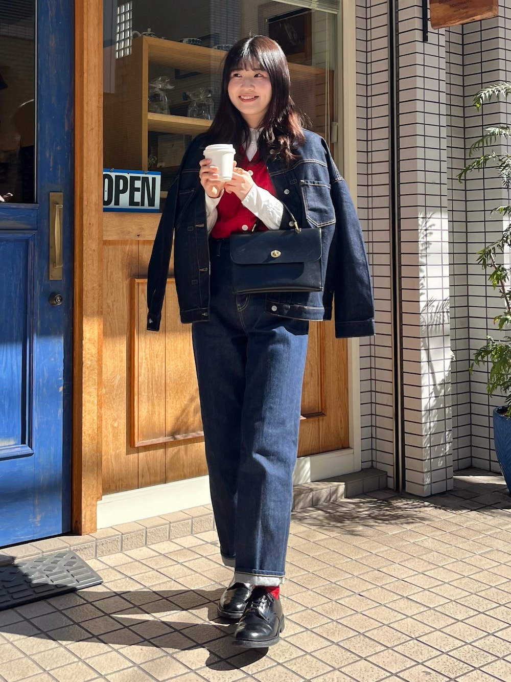 春はこの定番合わせがトラッドには必須🌸 インナーに赤ベストを入れることで 一気にブリティッシュな雰囲気にもなるし、 それとリンクする赤の靴下が可愛いのよ〜🧦❤️