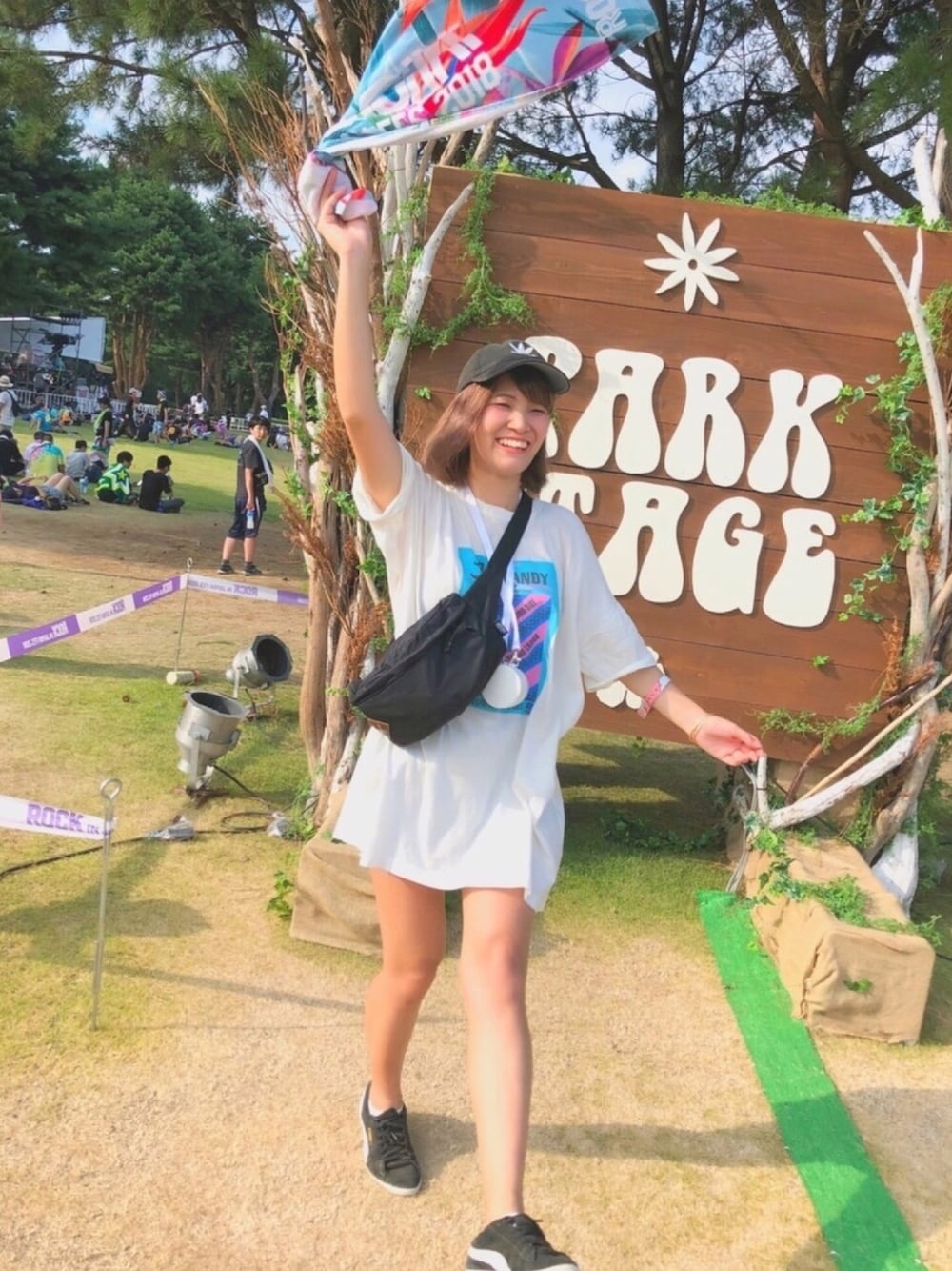 フェスコーデ! シャツワンピとショーパンでさらりと。 ウェストポーチは390円で買いました!