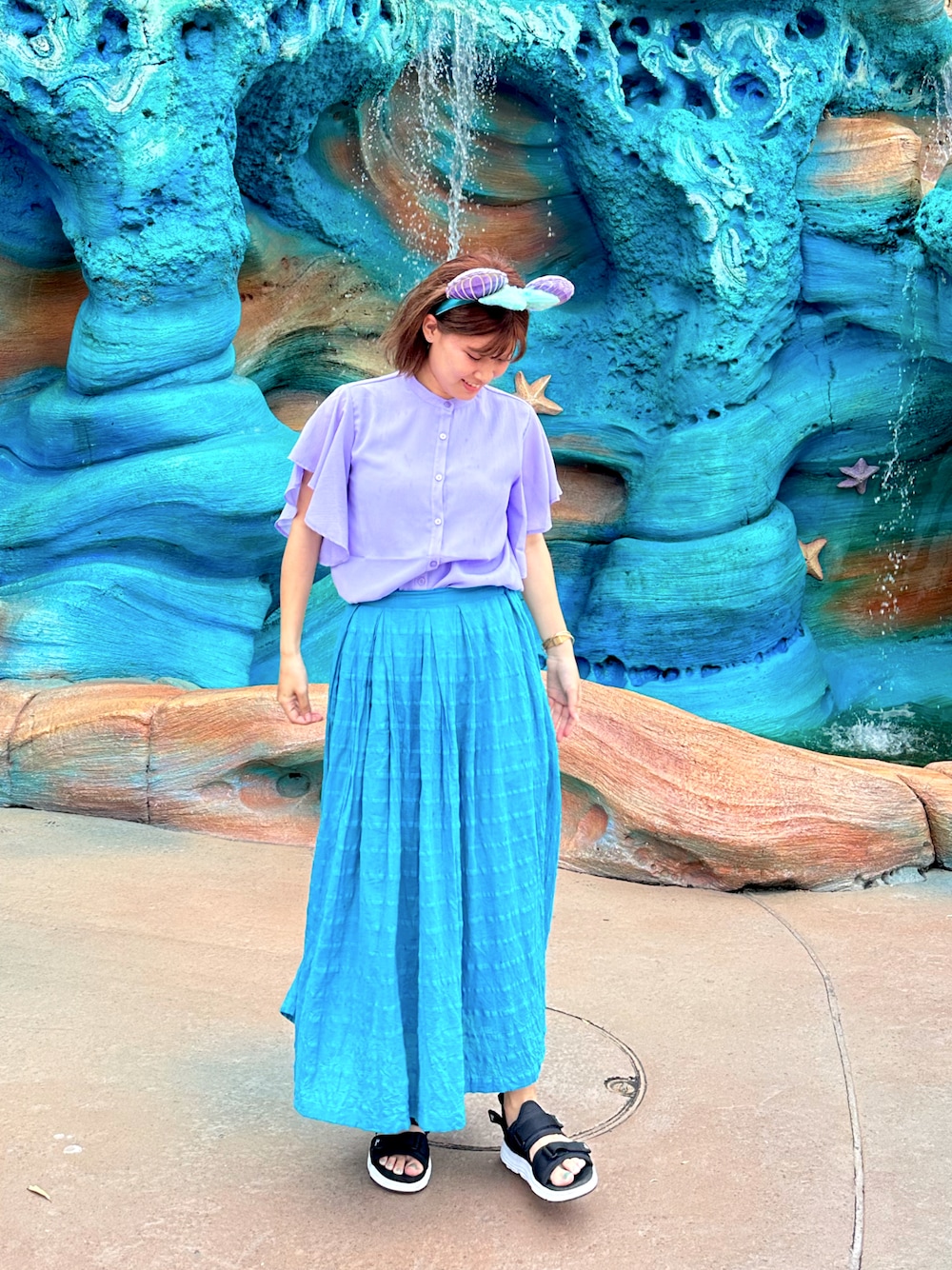 カチューシャに合わせた、アリエルコーデ⭐︎ ※カチューシャ下向いちゃってるので、よかったら2枚目みてね! ニューバランスのスポーツサンダルが、ディズニー1日歩き回っても、全然足が疲れなくてオススメ!!!!!!
