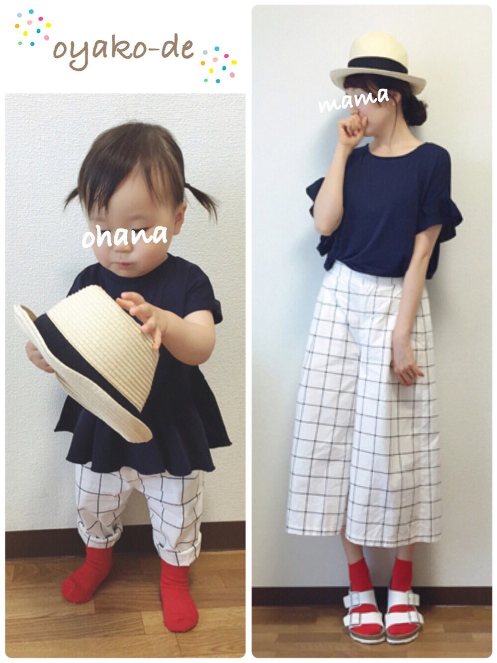 ちょ、ちょっとトップスが見づらいけれども💦 せっかくの靴下のリボンが見えないけれども💦(小窓参照。) ネイビー×ウインドウペン柄パンツでおやこーで。 母のガウチョは、去年の夏もヘビロテした大のお気に入り。 プティさんで、娘の同じ柄のパンツ見つけて感激〜😍✨ 今日初めて履かせたけど… 何これ、めっちゃかわいい。。 このパンツ、これからたくさん登場すると思うので、どうぞよろしく🙌🏻笑 今日も、夏か!ってくらい暑かったー! 急な気温の変化からか、娘はちょっと風邪気味です⤵︎ みなさまもお気をつけください🍀 見てくださって、ありがとうございました❤️