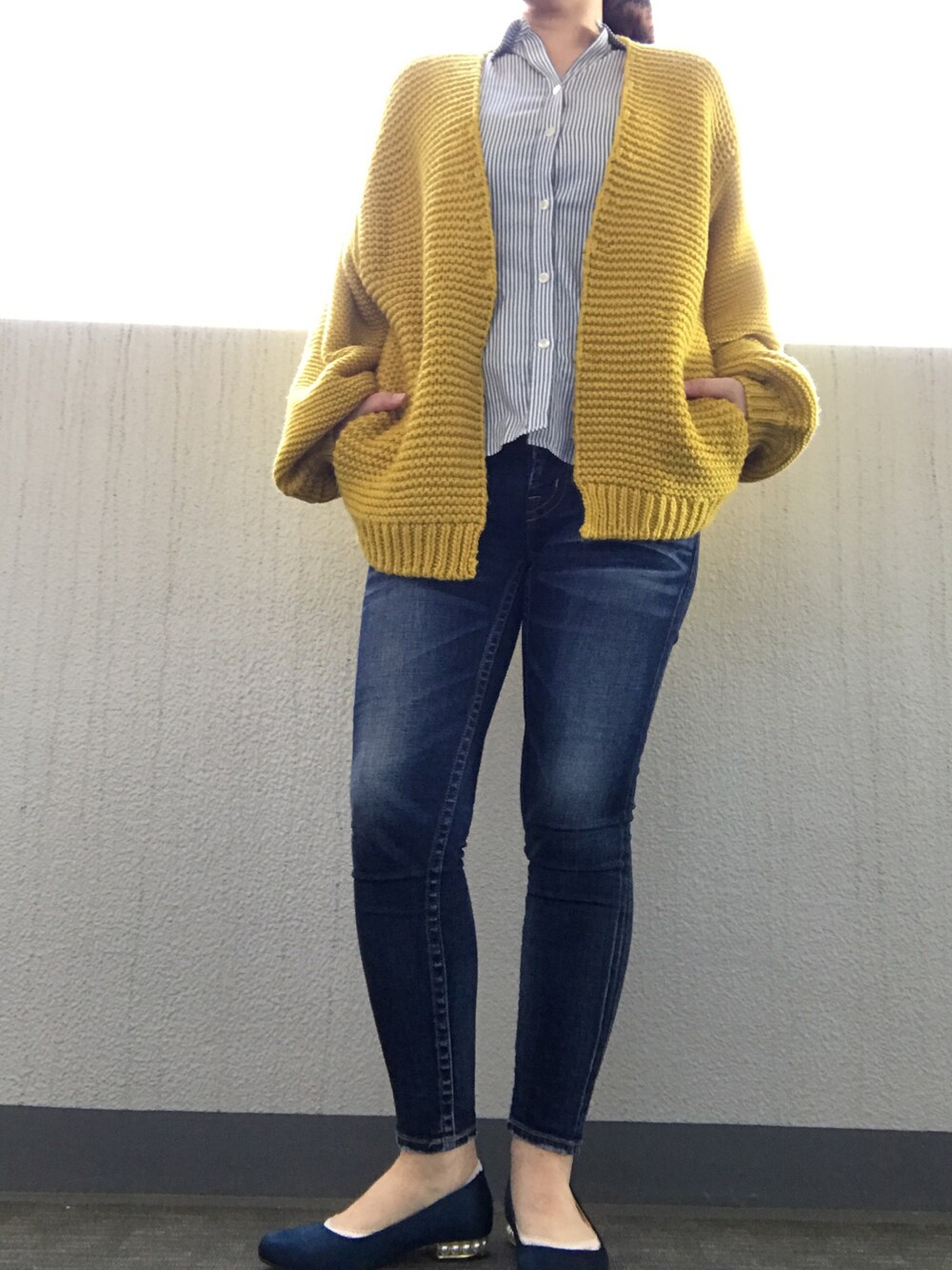 おはようさん🌞 春っぽく明るい色をチョイス。 この時期はカーディガン系が大活躍です。 写真では見にくいので小窓に載せましたが、パンプスがカワイイのでお気に入り✨ぺたんこヒールなので足が疲れないのも良し。