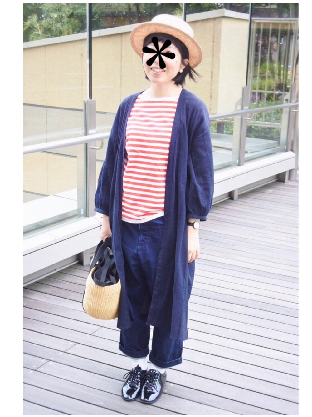髪の毛がはねてます なんばパークスの屋上です 服は 赤白ボーダーに うすいシャツ?に デニムに カゴです そろそろ梅雨かー。いやだな。