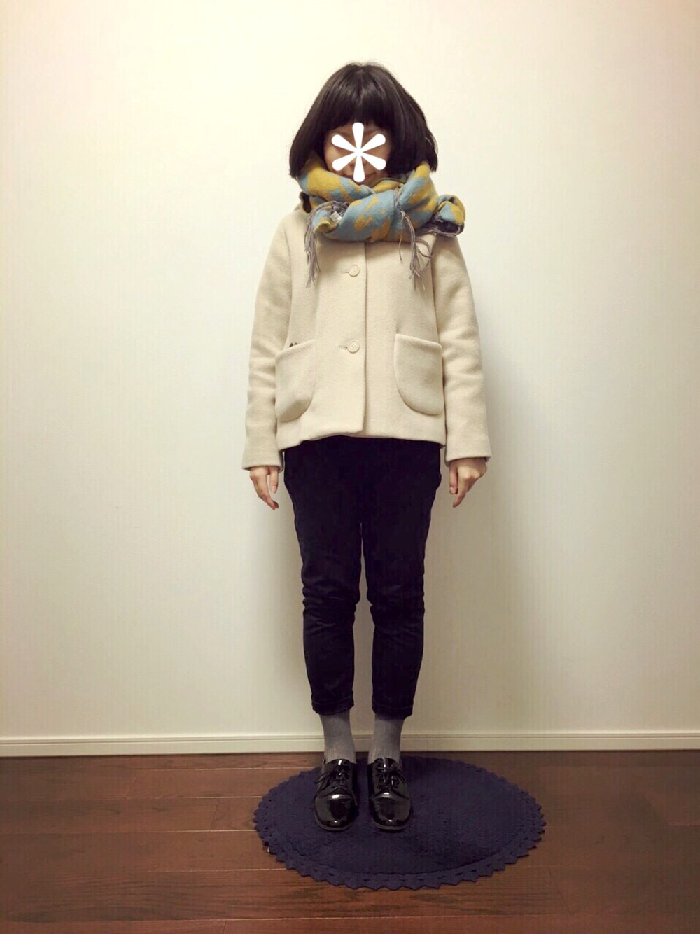 お出かけしてメガネを買いました まんまる黒メガネです おしゃれ風に見えたらいいけど 一歩間違えればベンゾウさんです 気をつけながら 今度かけてみます 服は 白のショートコートと 紺のパンツです 白のショートコートは襟がかわいいのに、 だいたいマフラーぐるぐるで見えません 明日はかなり寒いらしいので お家にひきこもる予定です 食料確保はばっちりです(笑)