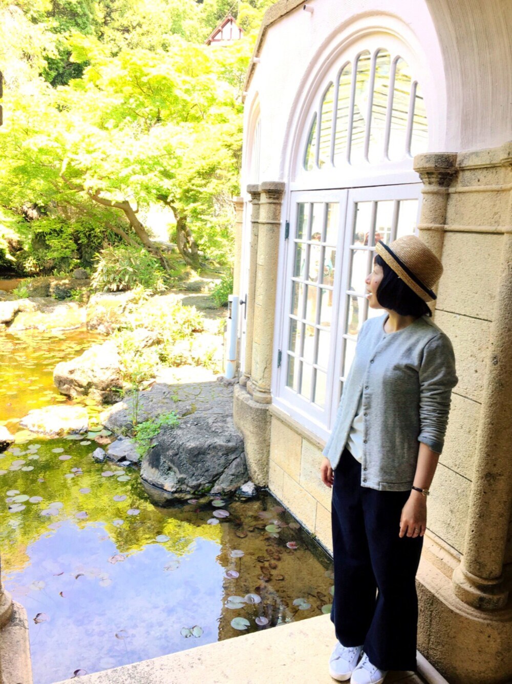 ゴールデンウイークです 大山崎山荘美術館に行きました 人もそこまで多くなくてのんびりできました 庭園で写真もたくさんとりました 帰りに梅田もブラブラして 休日を満喫できました 服は 初挑戦のワイドパンツに スウェット生地のカーディガンです 麦わら帽子の季節になりました