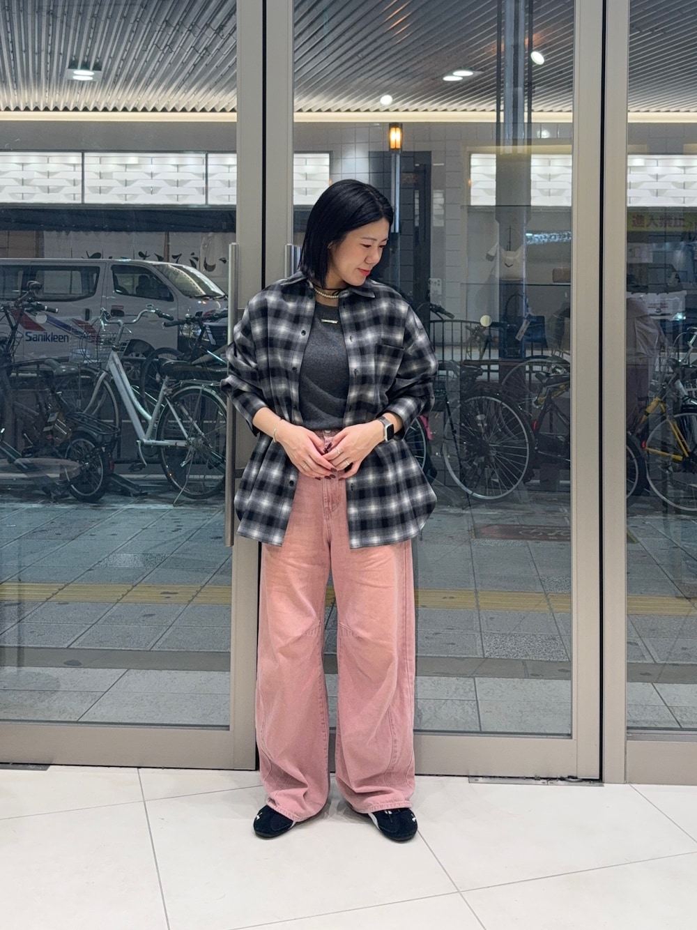 hana(SENSE OF PLACE なんばCITY)のシャツ/ブラウス「オンブレチェックルーズシャツ」を使ったコーディネート
