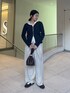 hana(SENSE OF PLACE なんばCITY)のカーディガン/ボレロ「『一部WEB限定カラー』『洗濯可』メタルボタンエリツキコンパクトカーディガン」を使ったコーディネート