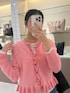 hana(SENSE OF PLACE なんばCITY)のニット/セーター「『洗濯可』フリルトリムニットカーディガン」を使ったコーディネート