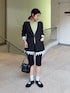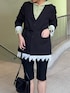 hana(SENSE OF PLACE なんばCITY)のノーカラージャケット「レースレイヤードノーカラージャケット」を使ったコーディネート