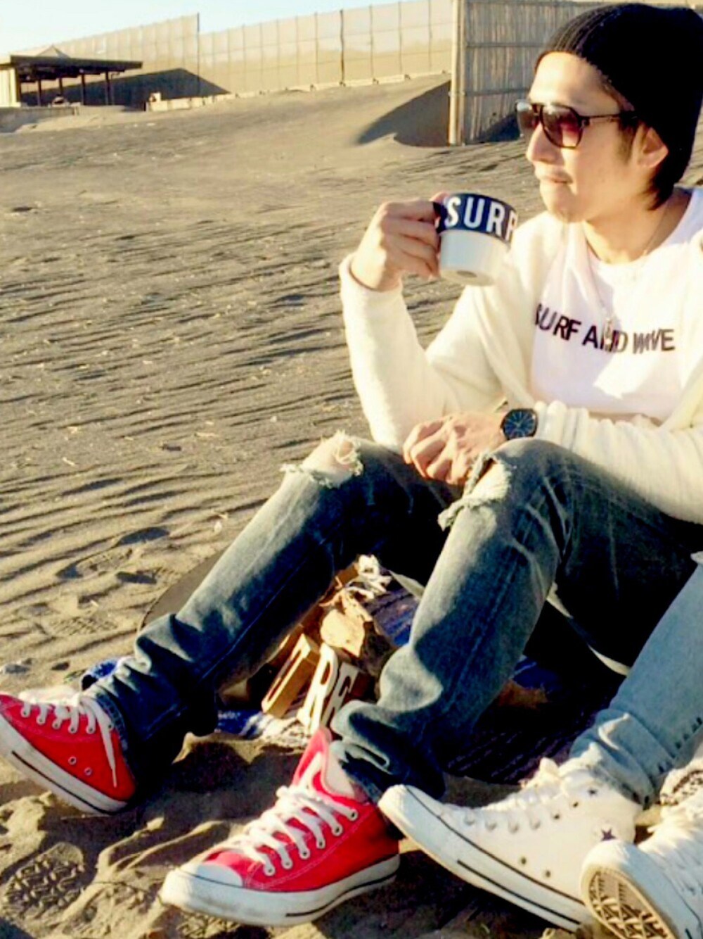 山本寅彦のスニーカーを使ったコーディネート
