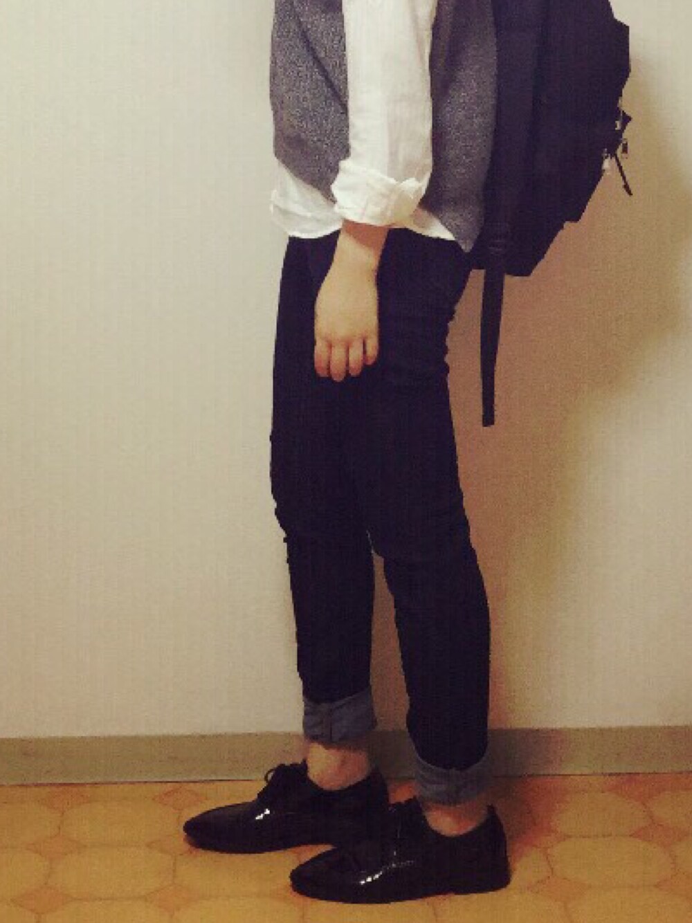 肌寒くなってきたので ニットのタンクにシャツを合わせて