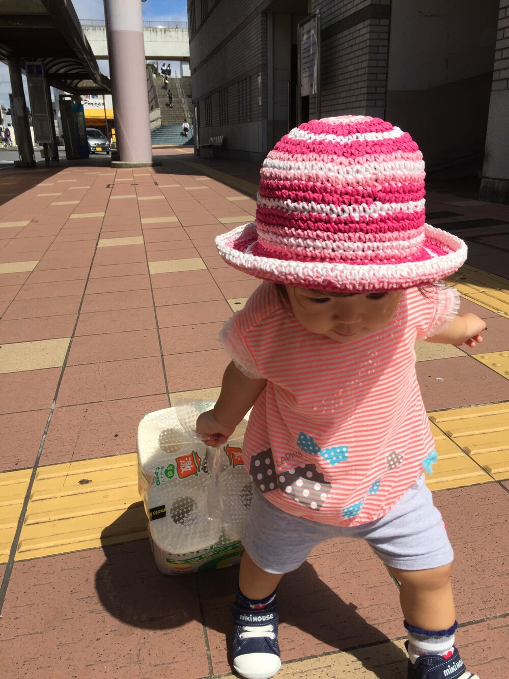 持ちたがるから持たせてみたけど、ずっと引きずってる(¯―¯٥) しかも3歩歩いては、持ち直す(´-д-`)