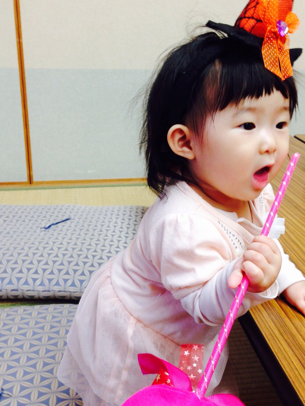ピンク系のチュニックを着用したキッズの秋コーディネートの1枚目の写真