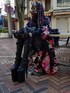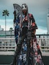 創作コスプレでコスイベントにて合わせた服装になり、身長190cm+25cmの厚底ハイヒールの215cmで撮影してます。 浴衣自体210cm 浴衣は振り袖で製作されております。 現代の妖狐とゴシックとしての混ぜなイメージ製作になりますので、和裁と洋裁の組み合わせの制作衣装です。 頭は和、頭から足までに洋の物に変わっていく変化を加えており写真では写ってませんが、中間地点の浴衣の帯は洋のコルセットに和の帯生地を組み合わせております。