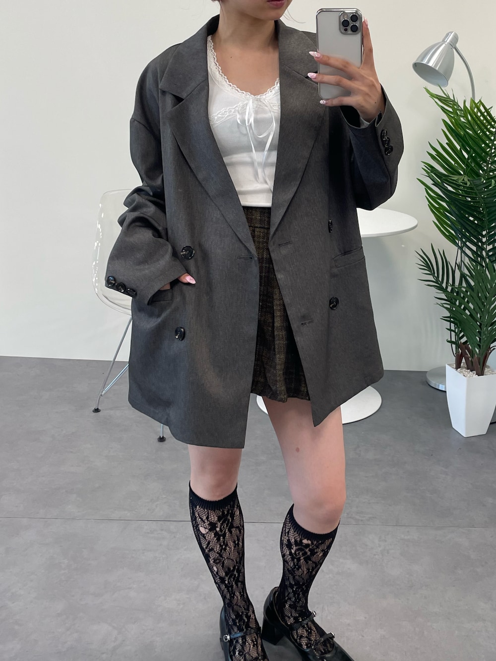 hangyo1113(MONO-MART LADY'S)のテーラードジャケット「【forksy.】ウェルトポケットダブルテーラードジャケット<セットアップ対応>」を使ったコーディネート