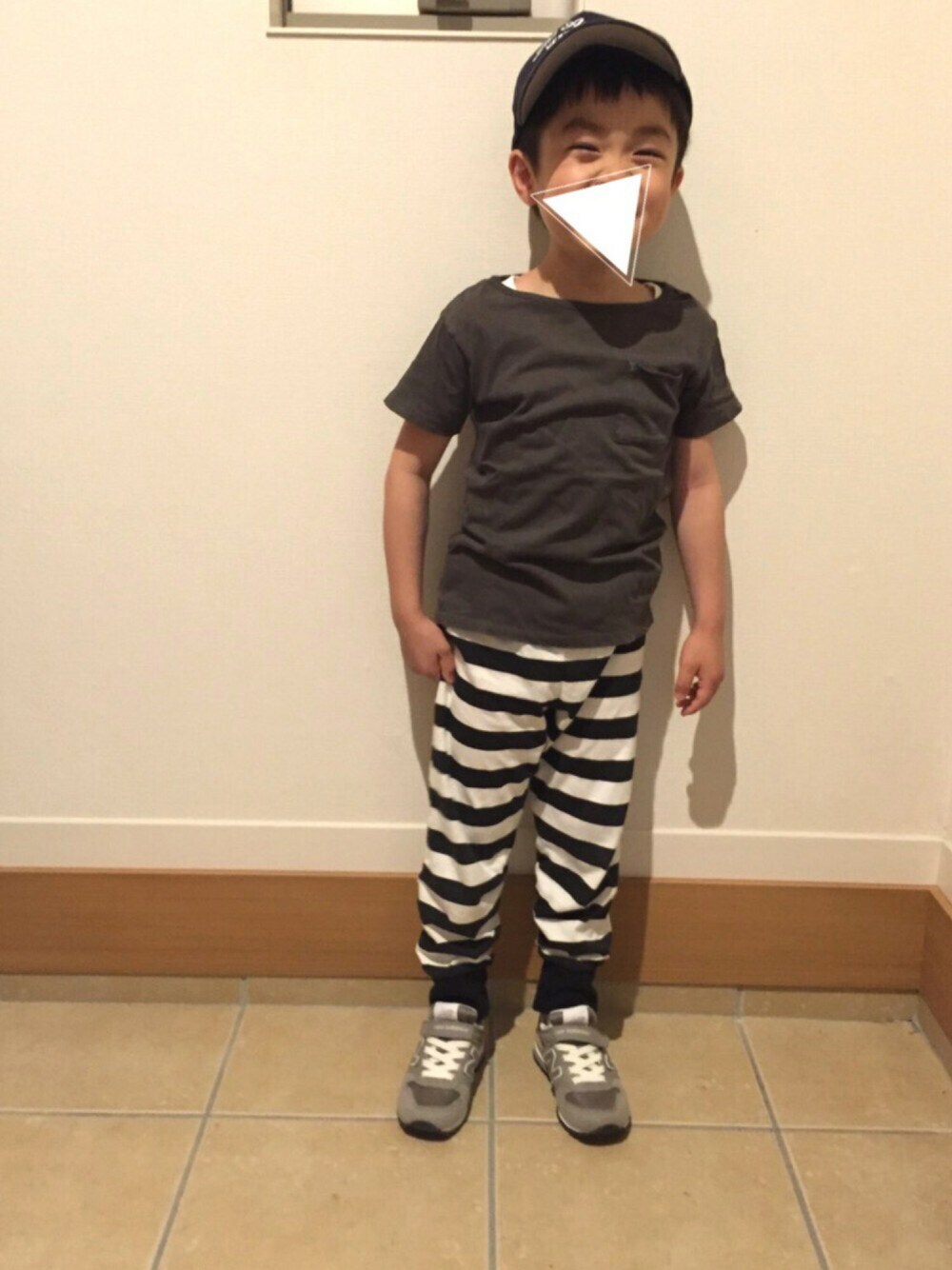 ちょっと、そこまでお出かけ。 下のパンツは、ミッキーのパジャマ😂 爆笑😵