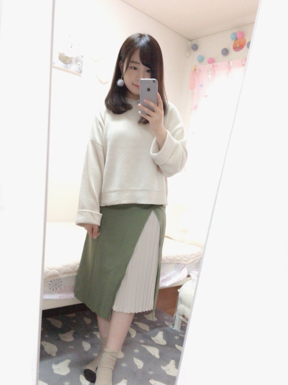みなさんこんにちは♡ 風邪をひいて寝込んでおりまして、 お久しぶりの投稿です(;_;) 今日は、もちふわのゆる可愛いニットと グリーンのスカートでコーディネートしてみました♡♡ 写真では見づらいのですが、 ニットの中にココディールのレースのインナーと組合わせてみました(*´ェ`*) ファーのイヤリングは何にでも相性抜群です♬ ご覧頂きありがとうございました♡ いつも、いいね&フォロー嬉しいです(*´ω`*)