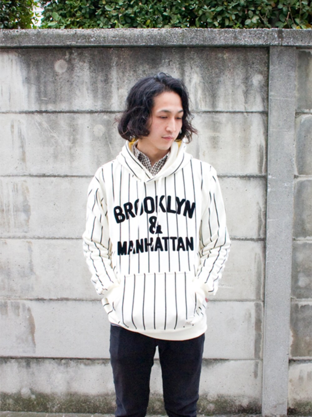 Hanjiroのパーカー「ストライプ裏毛フード」を使ったコーディネート