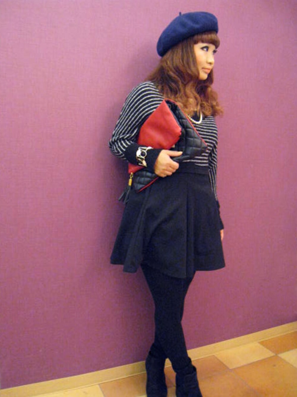 【13-3002-1201-01 ポンチフレアスカート】 ¥2720 【リバーシブルクラッチバック】 ¥2,625 モードなトップス×スカートをベレー帽とクラッチBAGでカラーを加えて。 大人可愛いスタイリングに。 札幌店STAFF:岩城