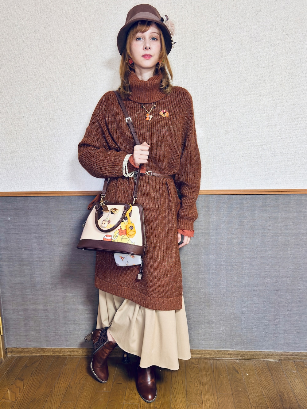 バッグありコーデを考えて見ました。バッグは去年のSamantha のディズニーコラボのものです。 プーさん可愛い🩷😍