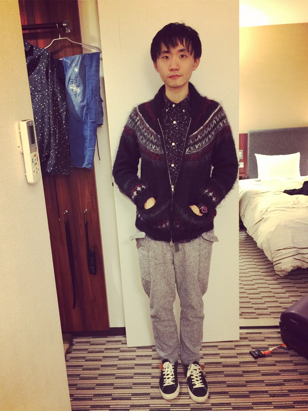 こんばんは! 今日立山に来た!山の中寒くて、ちょっと厚着しました!ジャケットはニットみたいな感じ、結構暖かいね。シャツは最近ネットショップで買った新品、紫の小花柄と黒合わせて秋の深みを出て欲しいです。太めのパンツとスニーカーは「和」というテーマを感じたらいいと思う! 日本語ちょっとおかしいかもしれない、大体自分言いたいこと言ったね(笑)、明日も旅行続けていきます!では、おやすみ! 見ていただいてありがとうございます!もし良かったら、「いいね」、フォローしてくれてお願いします!^ ^