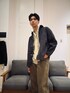 秋服を先取りし始めたので、金のネクタイをメインに ベージュ系統のシャツと、パンツを合わせております!それだけだと絞まりがないので、ジャケットを ダークグレーにして、全体で一体感のあるコーデに仕上げました!