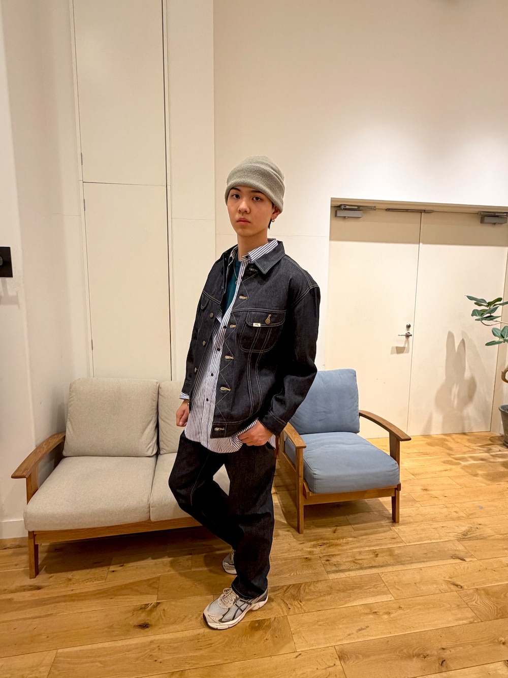 今回のコーデはLee101のデニムセットアップを使って 綺麗めカジュアルにまとめてみました! ニット帽や、スポーティなスニーカーでカジュアルさ を出し、インナーのストライプのシャツが 綺麗さを出してくれているので、普段のお出かけや デートなんかにももってこいのコーデです!