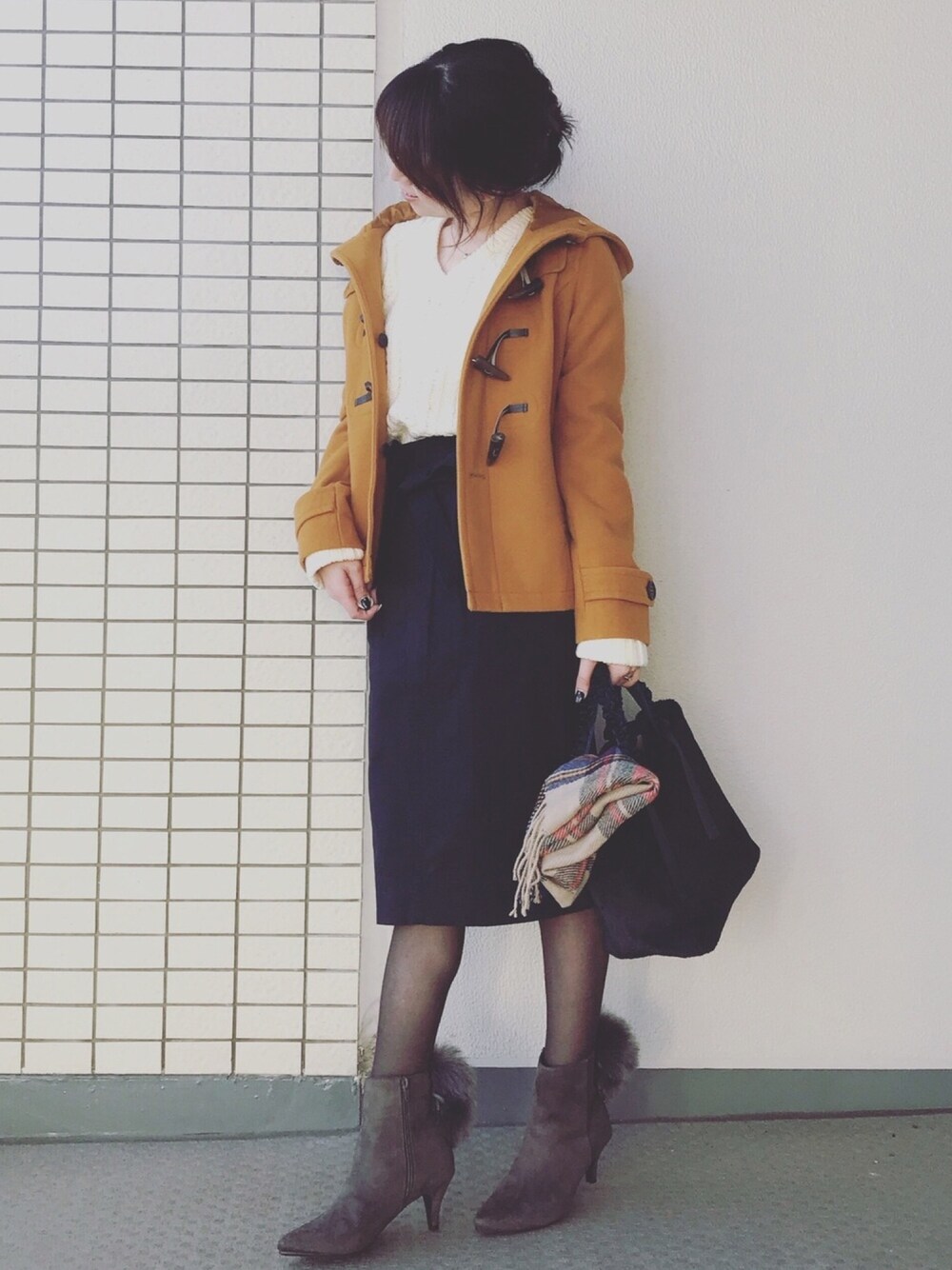 ♥hapiko♥のダッフルコート「フルフルダッフルコート(ショート)」を使ったコーディネート
