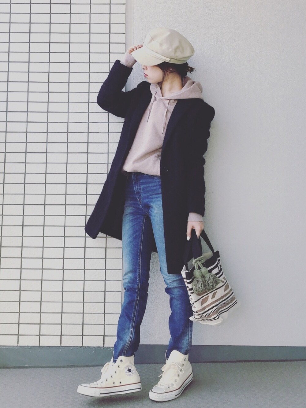 ♥hapiko♥のチェスターコート「スライバーチェスターコート」を使ったコーディネート