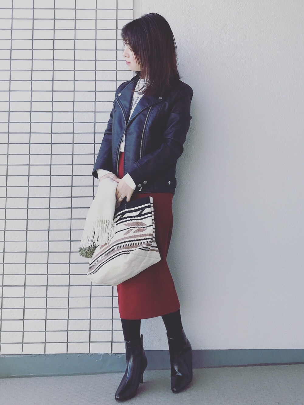 ♥hapiko♥のライダースジャケット「フェイクレザーライダースジャケット【ダブル】」を使ったコーディネート