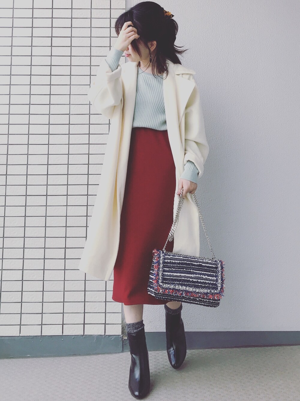 ♥hapiko♥のチェスターコート「フェイクモッサビッグカラースリットコート」を使ったコーディネート