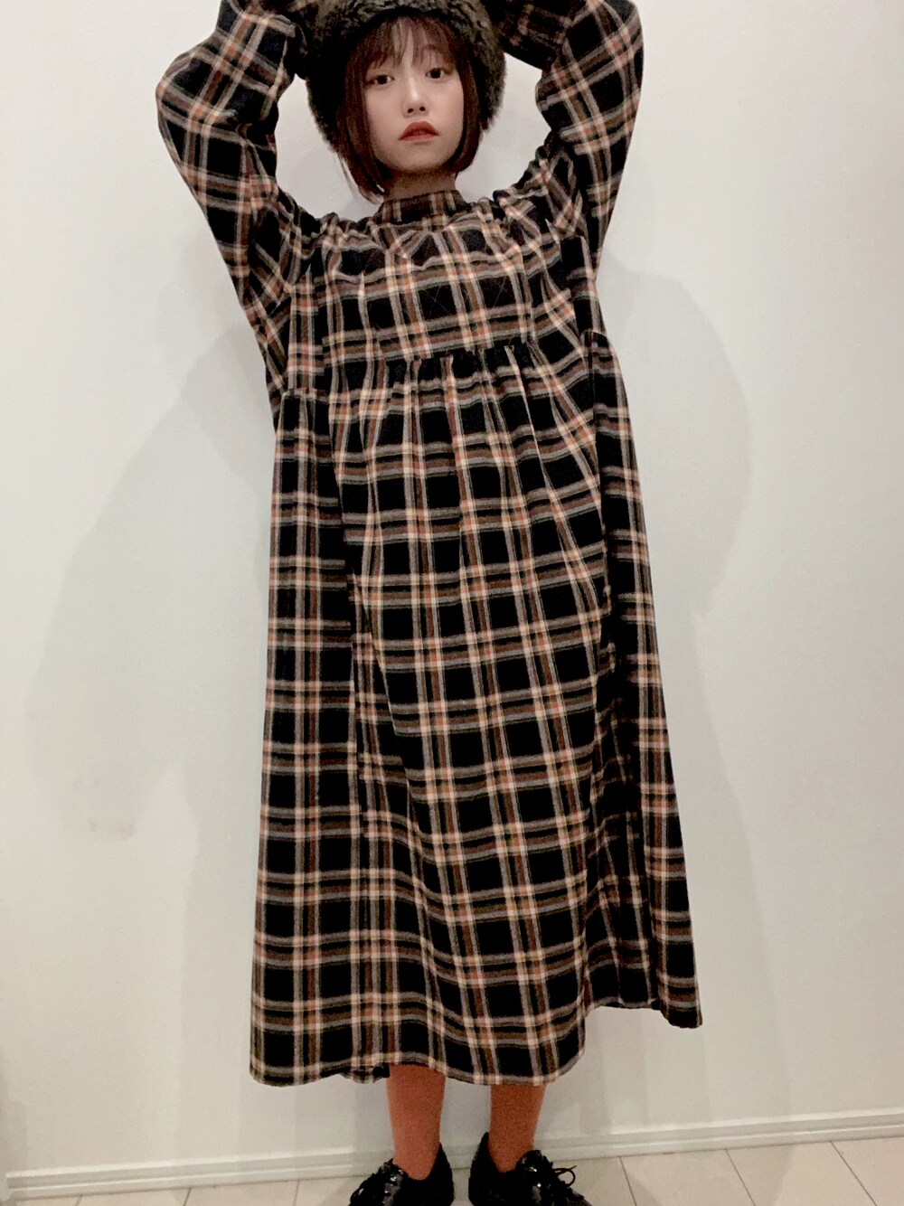 このmerlotのワンピースシルエットめちゃくちゃかわいい……全身暖色系でまとめてかわいらしい感じにしたよ🍊