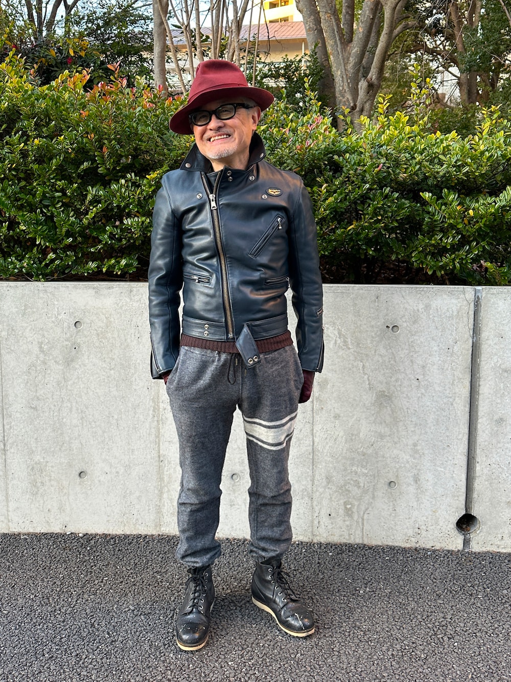 本日は原宿の老舗酒屋で角打ち ルイスレザー初着用