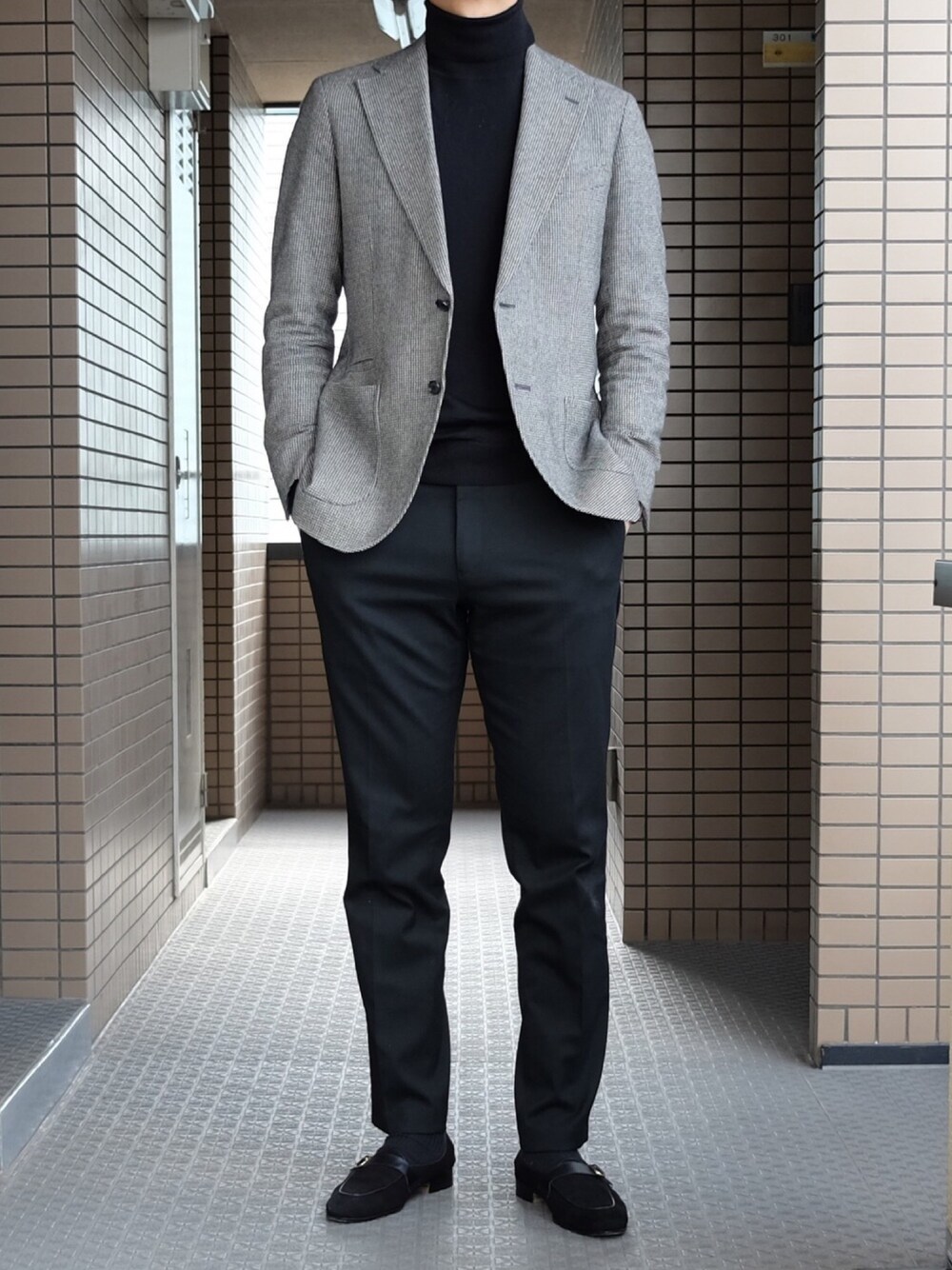 千鳥柄のジャケットを主役にした、シンプルなモノトーンスタイルです。 フェランテのモンクローファーを最近購入したんですが、万能すぎてヘビロテ中です。