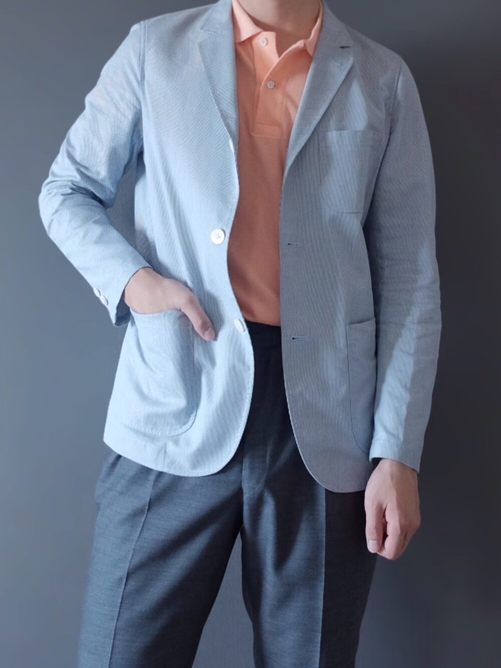 Yuki Sugaのテーラードジャケット「BEAMS PLUS / シアサッカー 3B ジャケット」を使ったコーディネート