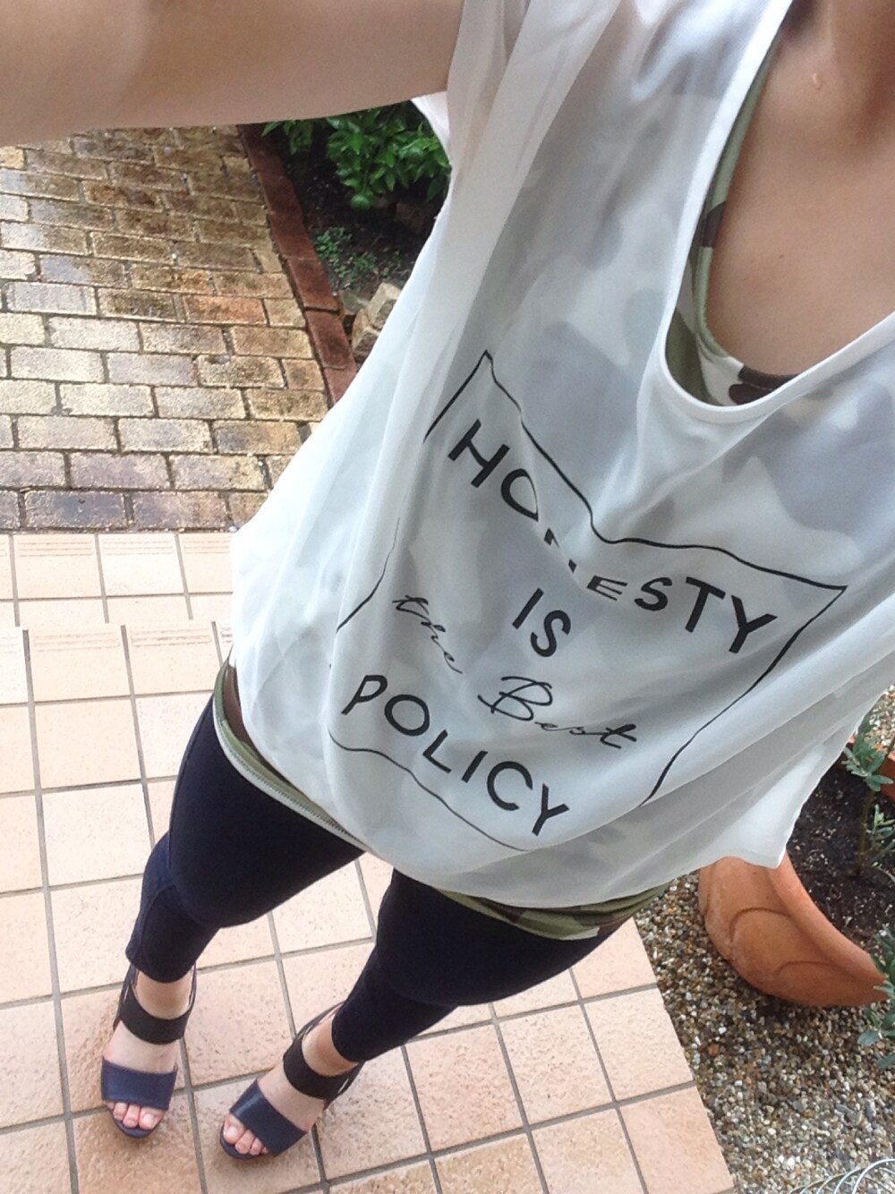 こんにちは。 雨ですね😢 補習から帰ってきて特に意味もなく着替えてみました笑 迷彩大好きです😁 今回はタンクトップを迷彩にし、トップスから透けさせてみました! パンツはレギパンです!