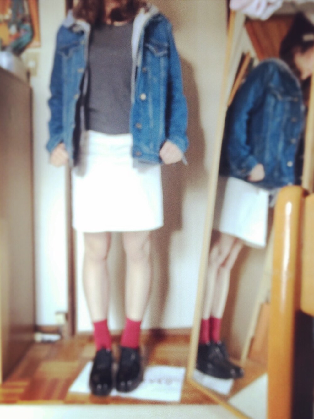 久々の投稿です(*^o^*) 一ヶ月ほどヨーロッパに旅行へ行ってました😆🇮🇹🇩🇪🇬🇧🇫🇷🇪🇸 先日ずっと狙っていたデニムジャケットをゲットしたので、さっそくコーディネート👗 ホワイトデニムのスカートをあわせて春意識のデニムオンデニムです^ ^ 靴はスペインのZARAで一目惚れして購入しました♩ 写真はデジカメのセルフタイマーに挑戦したらめちゃくちゃピンボケ、、(笑)