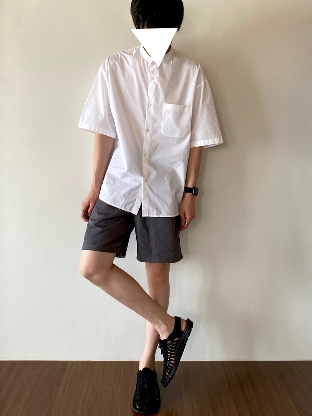 ご覧いただきありがとうございます! 上下GUコーデです。 今の時期、ショートパンツにサンダルはマストアイテム🤞🏻 上半身はすこしワイドのふわっとした白シャツで、その分下半身で広がりを抑えたコーデです✌︎ いいね・フォローお願いします☺︎ インスタグラムもぜひチェックしてみてください^_^