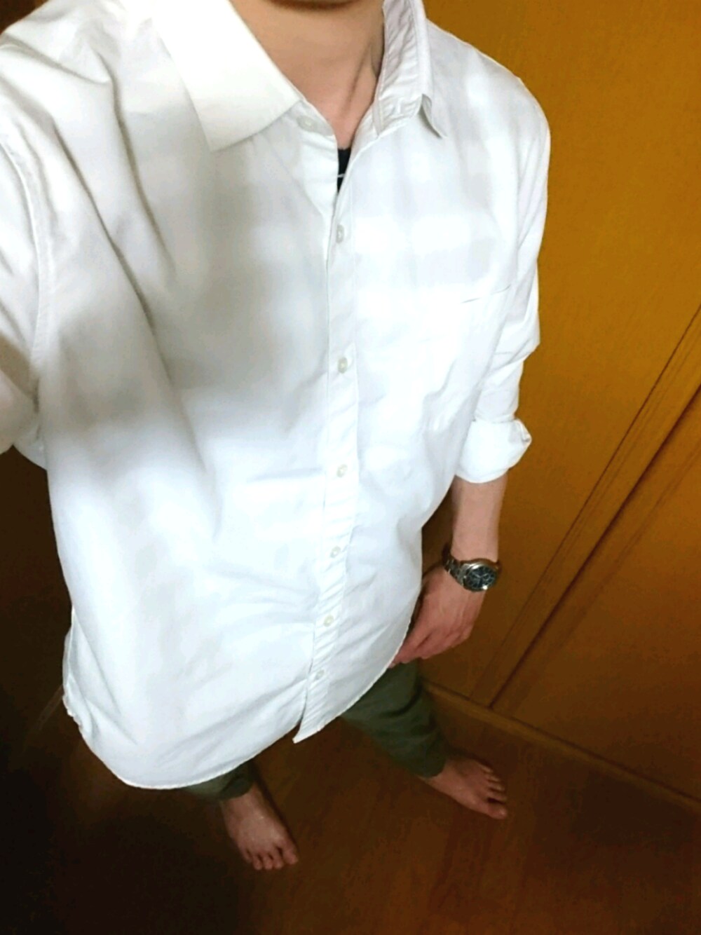 ホワイト系のシャツ/ブラウスを着用したメンズの夏コーディネートの1枚目の写真