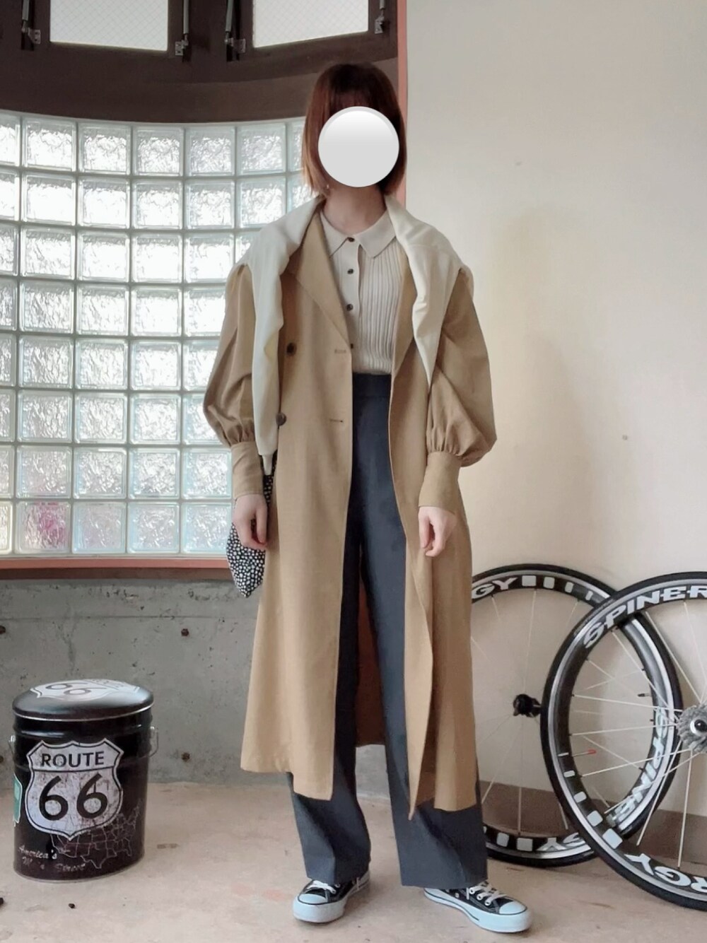 久しぶりにタックワイドパンツ。 と、ロゴスウェットを肩掛け。 イヤリングで少しきらっと✨ 気温は21℃/11℃⛅️