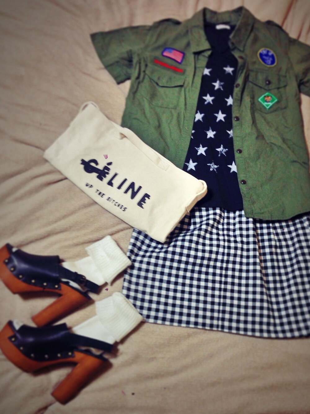 シャツ...wego Tシャツ...gu スカート...gu 靴下...靴下屋