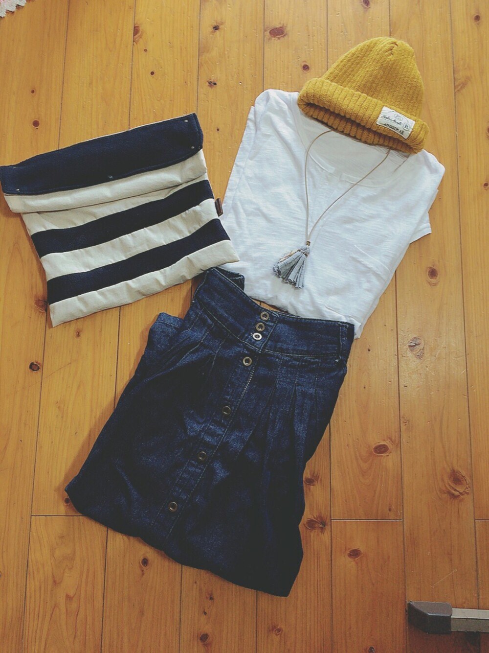 先日、一目惚れしてついついポチッとしてしまった 韓国服の白Tが届いたので 平置きでコーデしてみました😁 ついでに朝から取り掛かって出来あがったバックを合わせてみましたよ⤴️⤴️ かなり理想的な感じに仕上がって大満足💗💗💗💗 今月末に 1dayショップをするので その為に製作した物ですが クラッチバックにも 手持ちにもなるバックです♫