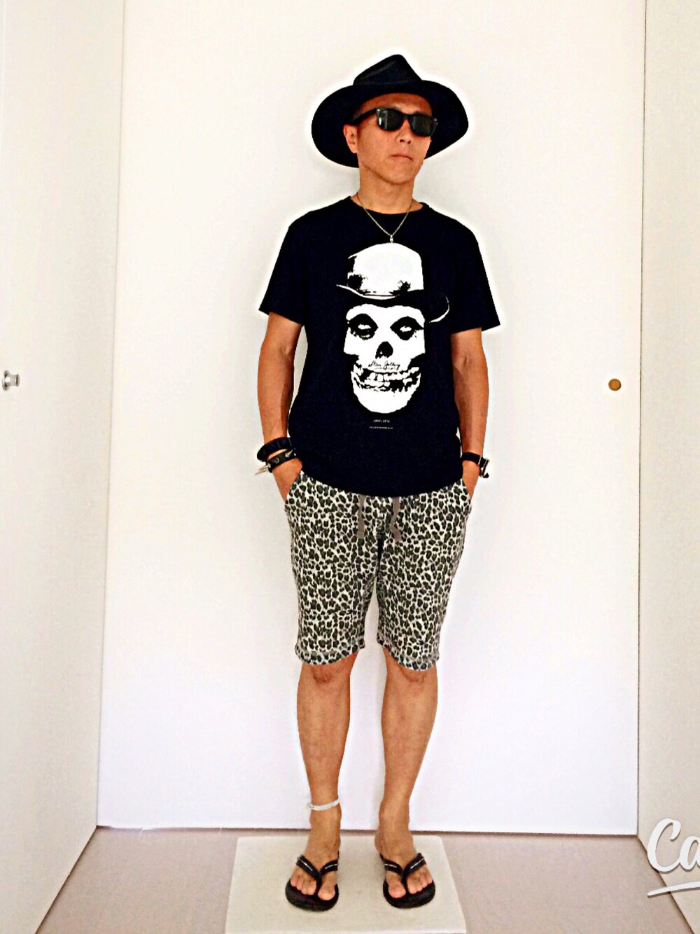 GUのレオパードハーフパンツ… 1000円しないのに大活躍✨ ここ数日暑くてデニム履きたくありません😅 N.hollywoodには珍しいロックTはMisfits😉