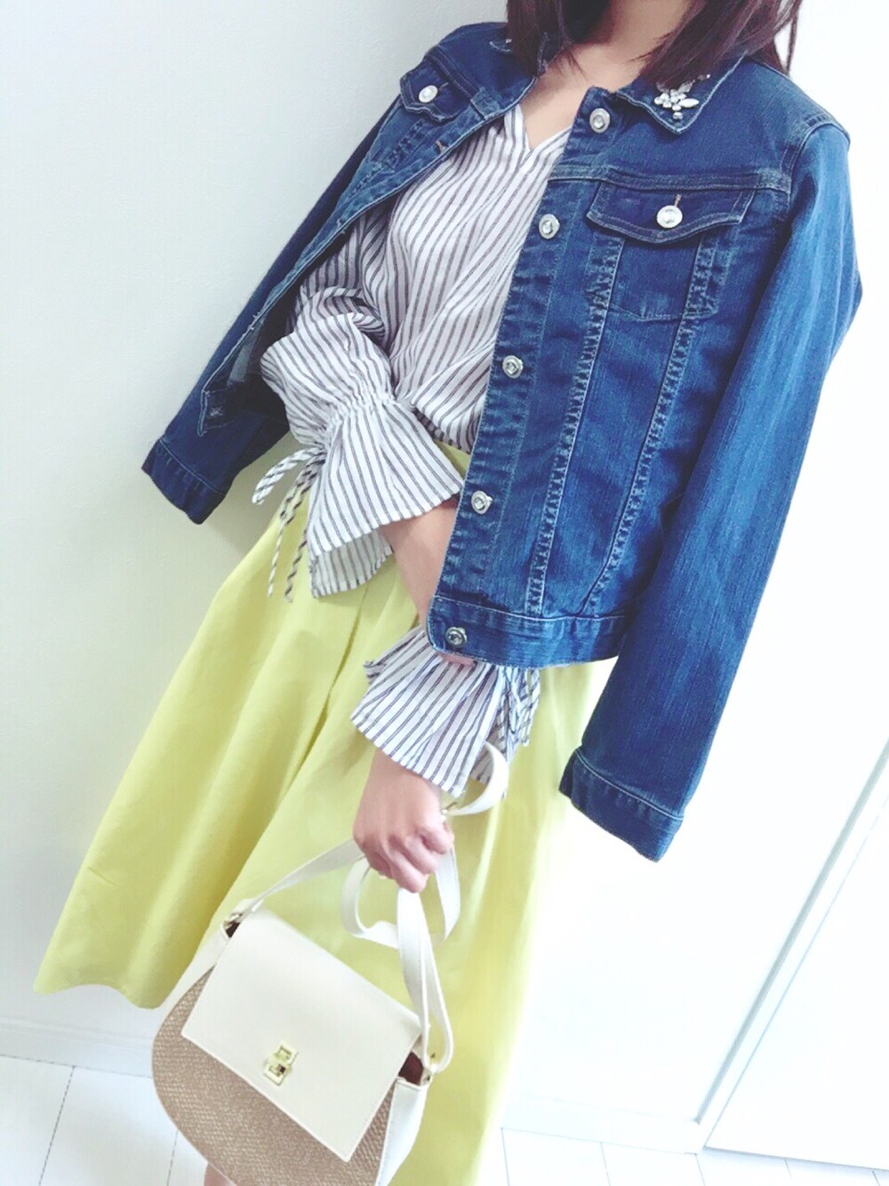 わーいら🙌晴れたあったかーい☀️ という事で先日購入したGUのスカート履いちゃいました😳ジャケット以外全身GU🤤