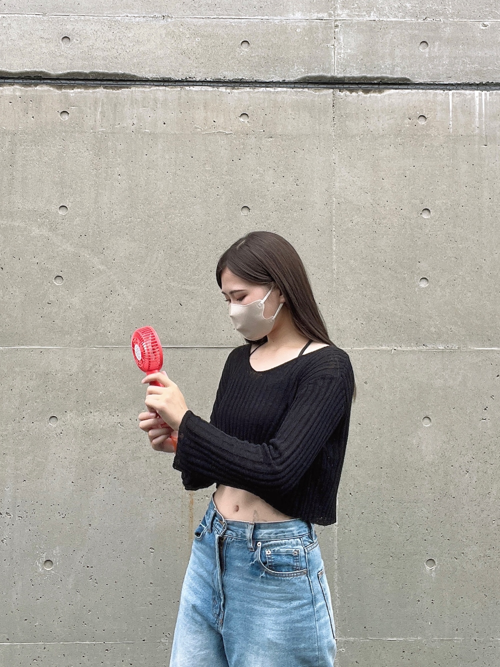 ミ_saki のニット/セーター「ショートシースルーカラーリブニット」を使ったコーディネート