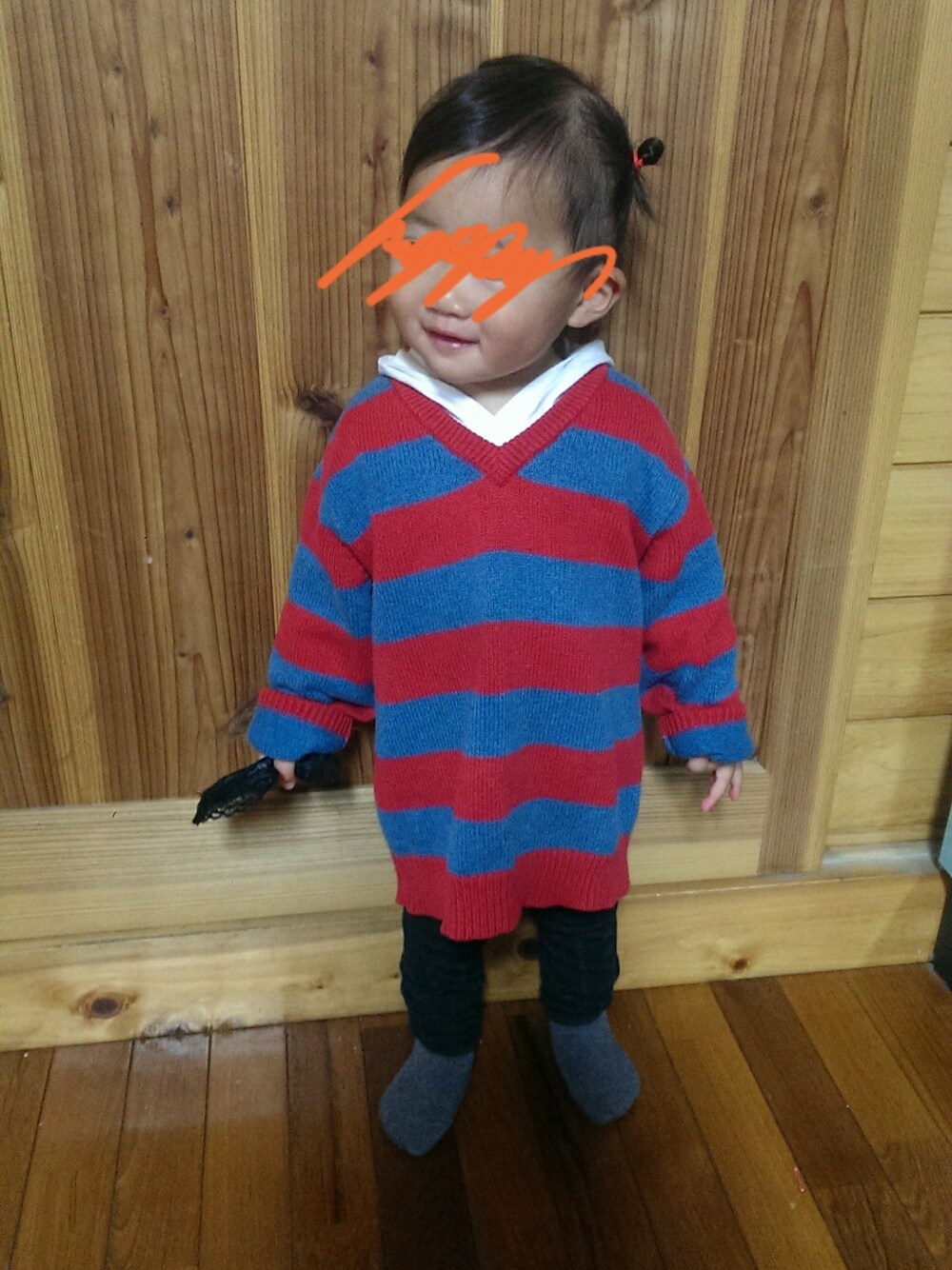 今日は半分お兄ちゃんの服。セーターをニットワンピにして。wearのおしゃれキッズみたく、白ニットや茶ニット欲しかったのですが今季はこれで代用(笑)