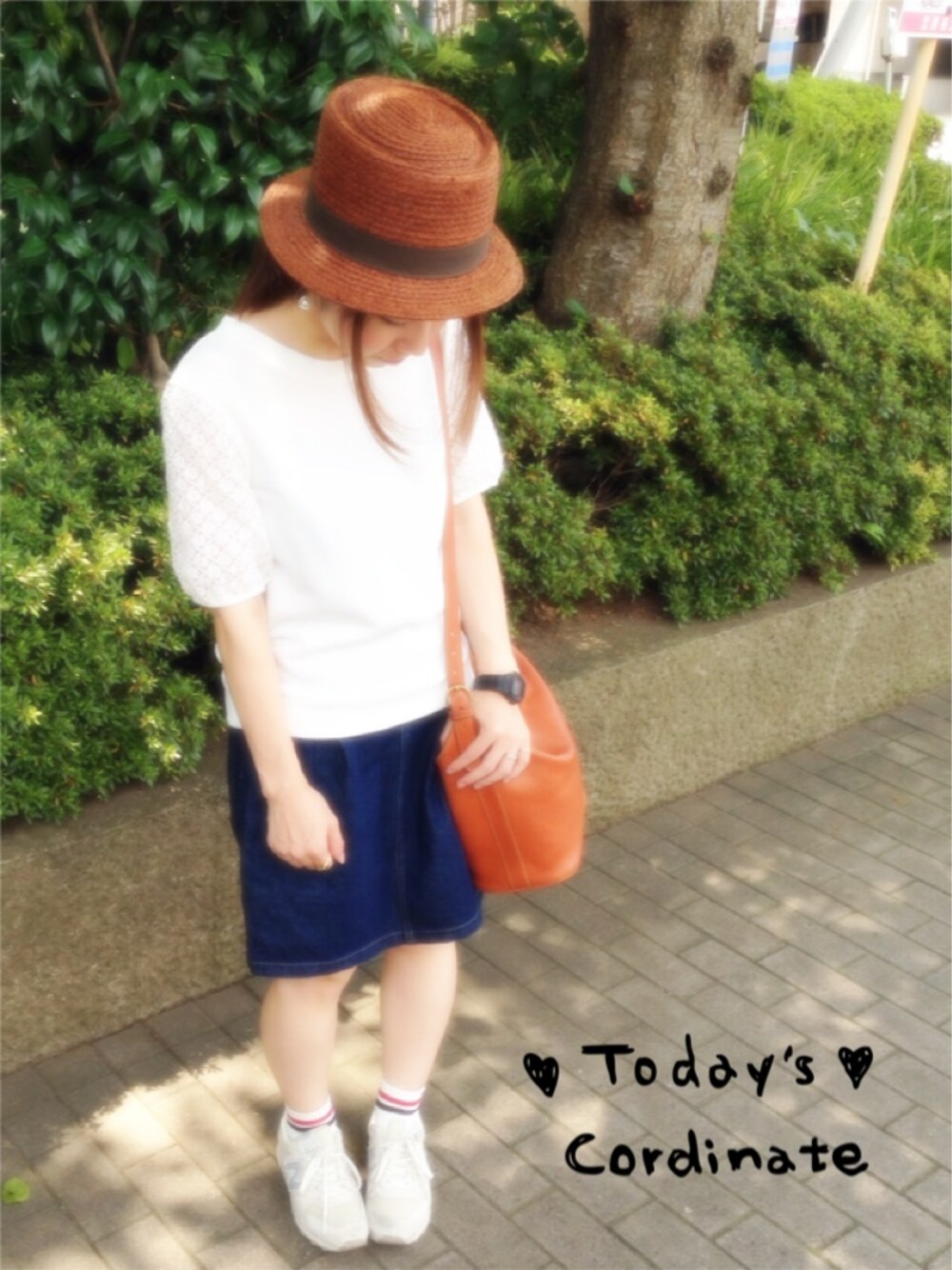ハット❥ BEAMS ピアス❥ mystic オーガンジー袖PO❥ mystic スカート❥ mystic バッグ❥ ilbisonte 時計❥ CASIO ソックス❥ 3coins スニーカー❥ newbalance